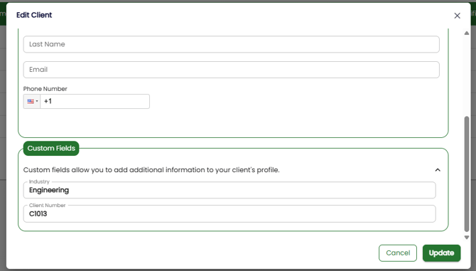 There will be a ‘Custom Fields’ section below. This section will also show when adding a new Client going forward.