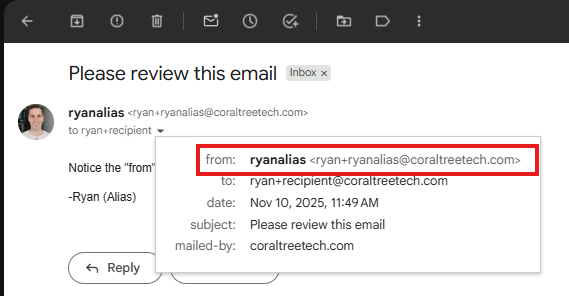If your Gmail account has aliases defined, you can toggle between these aliases when viewing, composing, or forwarding emails through the Email tab of Basil.