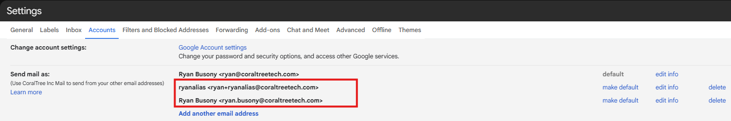 Next, ensure that the Gmail account linked to your Basil account lists additional addresses in your Gmail’s Accounts page.