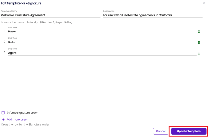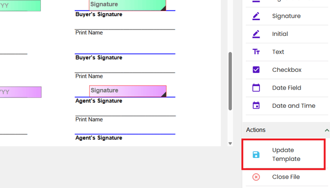 You can change the number of signers if necessary; otherwise, you can click “Update Template” to update the template fields.