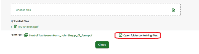 This folder will display the form responses saved as a PDF and all uploaded files. You can view these files directly or move them to the client's appropriate workspace for easier future access.