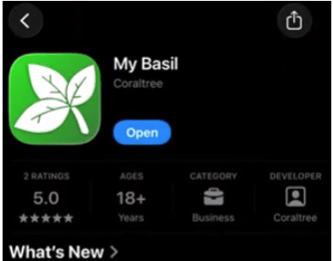 Then search for “my basil” and select the app with a green leaf icon from 'Coraltree'. Tap GET or INSTALL.
