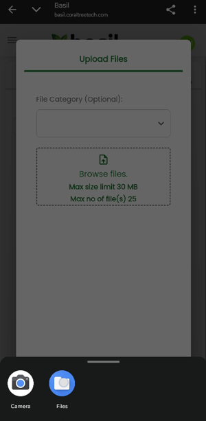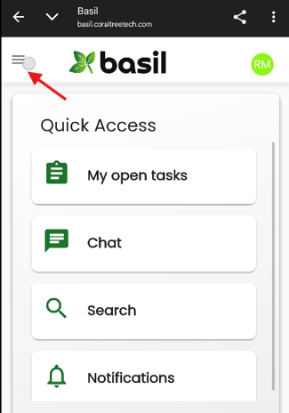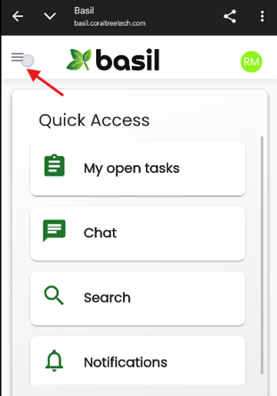 Once logged into Basil on mobile, tap the three lines on the top-left and tap ‘Files’.