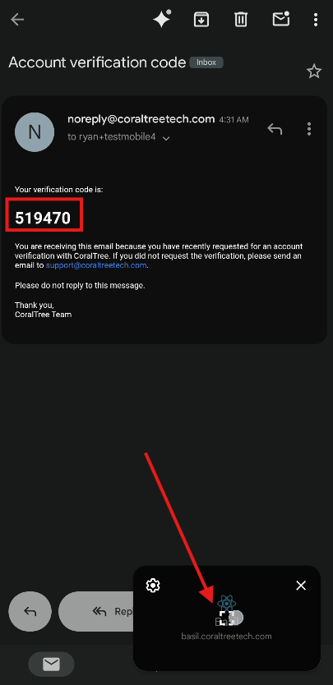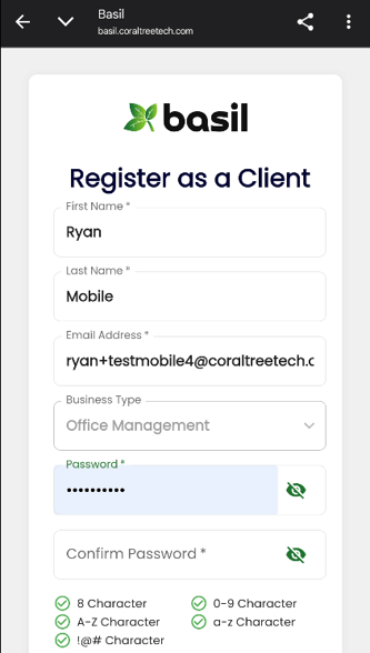 If you were invited to join Basil from an email (from noreply@coraltreetech.com), you can tap the ‘click here’ button in that email.