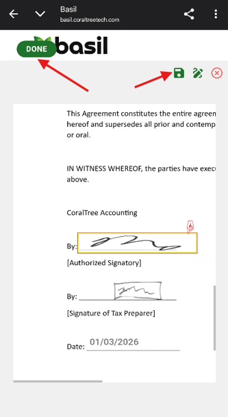 eSigning Documents while Logged into Basil on Mobile: