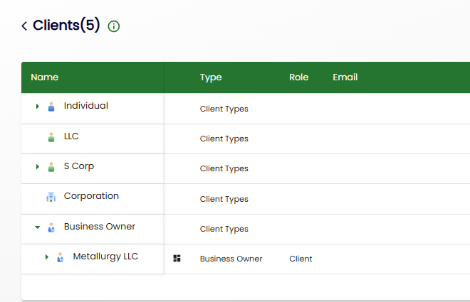 This type of Client is used when working with an incorporated business such as an LLC that owns multiple subsidiaries.