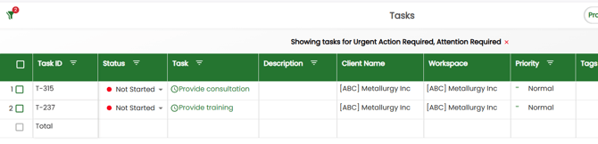 This view is designed to be like working in a spreadsheet. Here you can see a full list of all your 'Not Started' and 'In Progress' tasks from top to bottom in the order created. This view also provides additional details of each task in the columns along the top that are not present in the other two views.