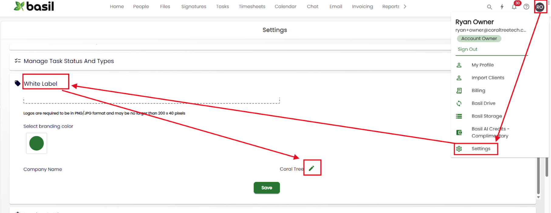 To update your company name, follow these steps:
