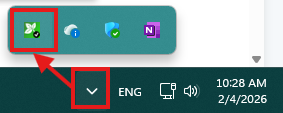 - Open the System Tray on your computer's Taskbar by clicking the up arrow to the left of the system clock.