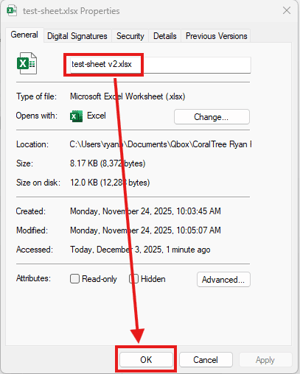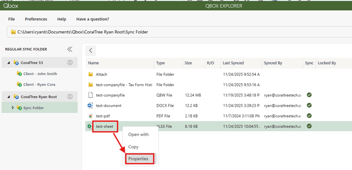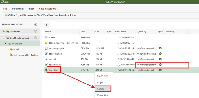 4. Open the file with the new name from Qbox and ensure it locks and syncs when closed