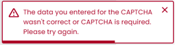 “The data you entered for the CAPTCHA wasn't correct or CAPTCHA is required. Please try again.”